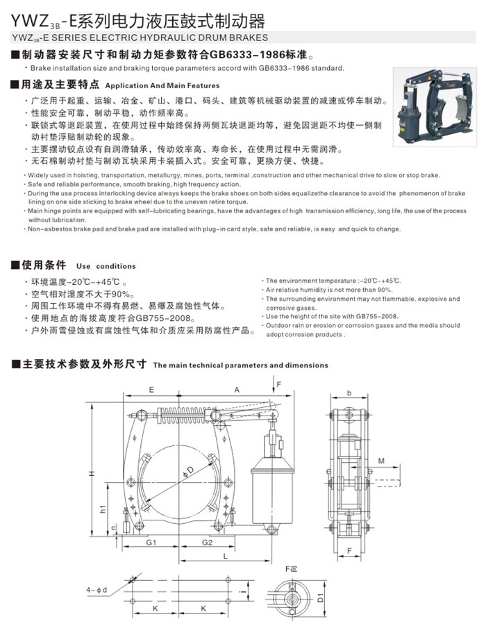 YWZ3B-E系列电力液压鼓式制动器